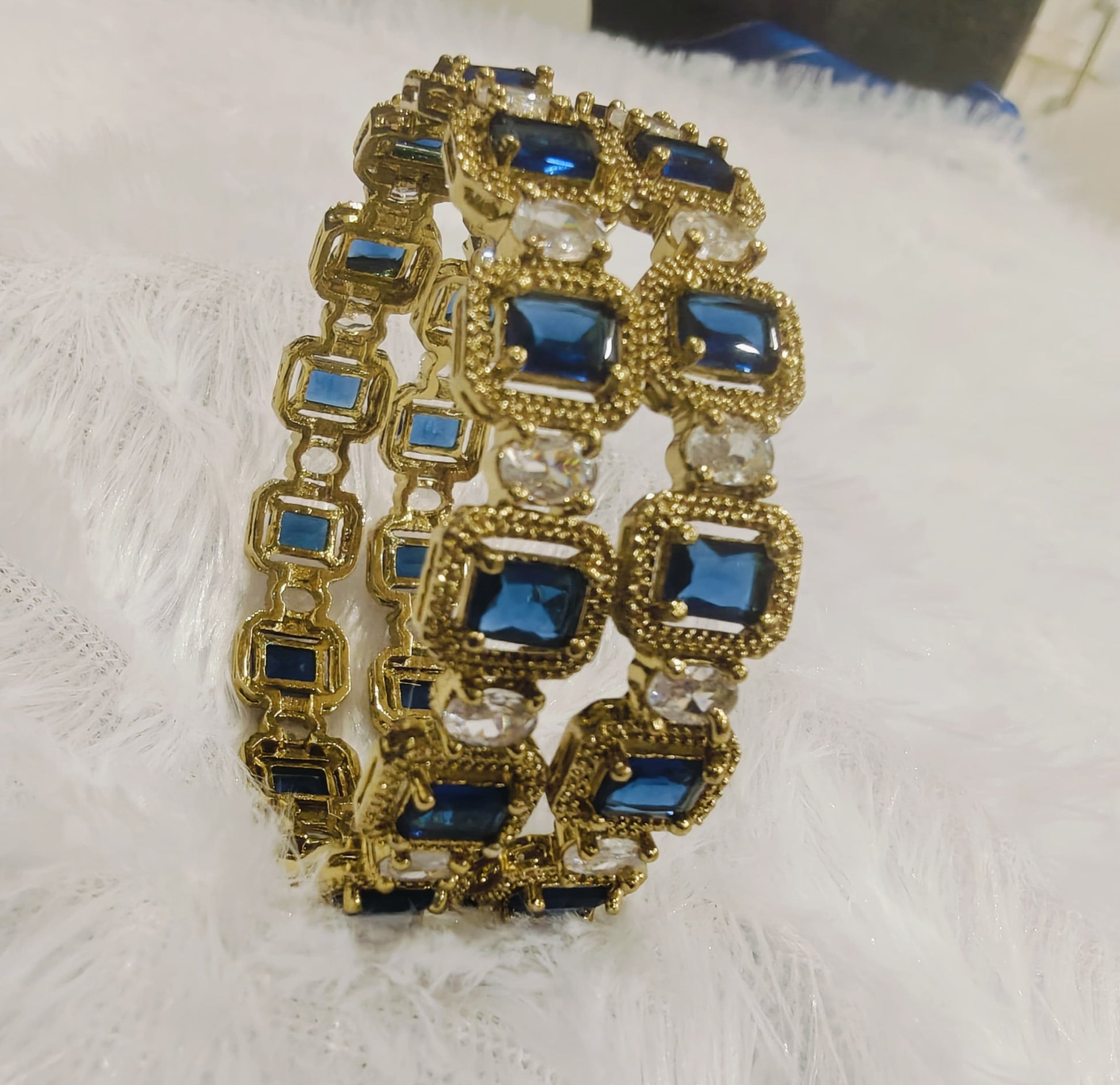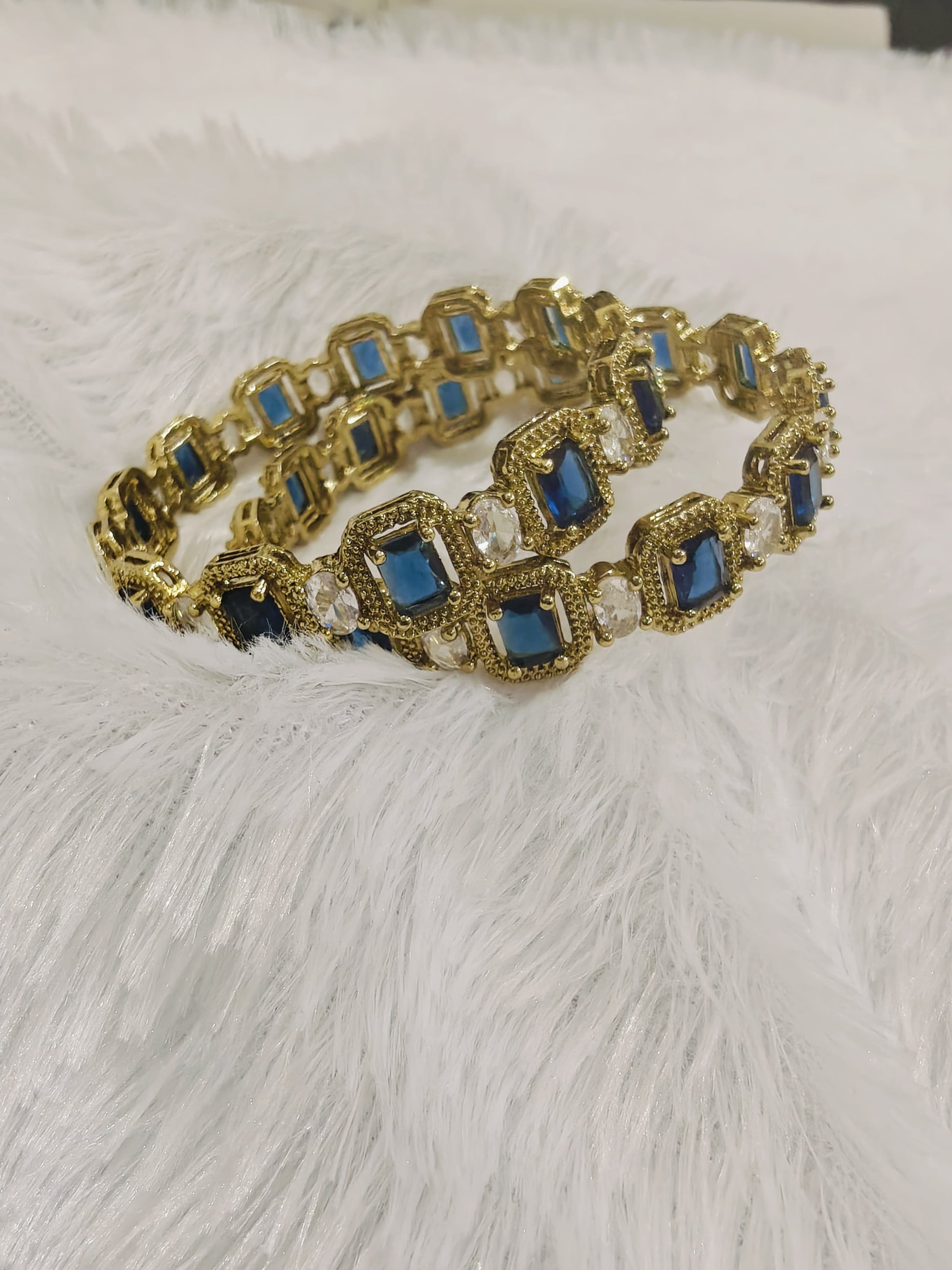 Blue And White Cubic Zirconia Stone Bangles
