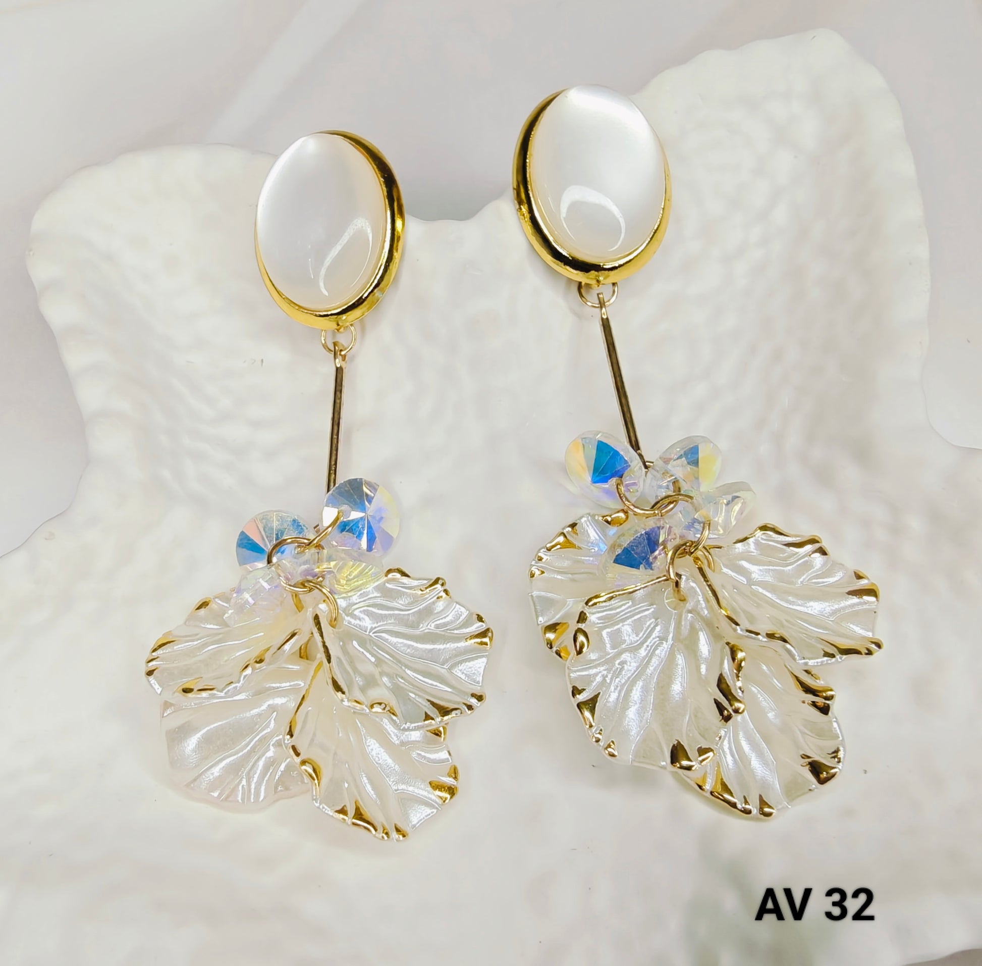 Featuring a glossy oval Kundan stud at the top, the design flows into a beautifully crafted floral drop with intricate gold detailing and subtle pearl-like accents. The addition of tiny shimmering stones enhances their charm, creating a perfect balance of tradition and modernity.